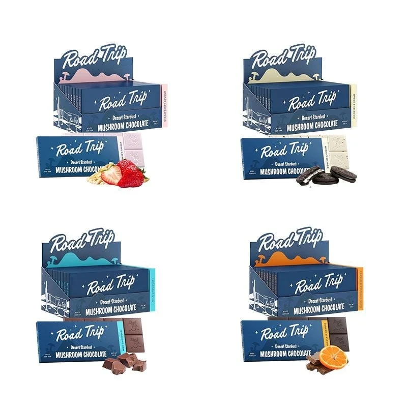Experience the perfect blend of rich chocolate and the euphoric essence of mushrooms with the Road Trip Desert Stardust Mushroom Chocolate Bar. Crafted for those seeking a harmonious balance between taste and tranquility, this bar is your ticket to a serene escape.